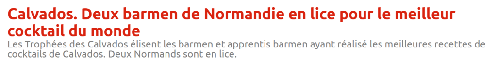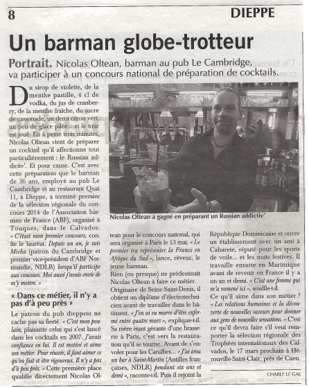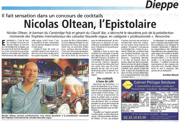 Actu.fr, le 8 mars 2015 (Nicolas Oltean, l’as du cocktail « Epistolaire » (actu.fr)