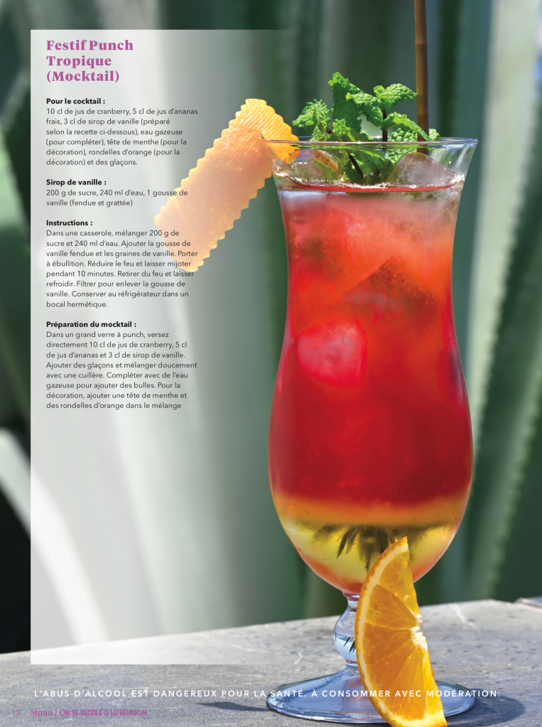 30 déc. 2022- Niko se spécialise dans la création de mocktails inspirés des saveurs et traditions de La Réunion. Il utilise des ingrédients locaux comme la vanille bourbon, le tamarin, les agrumes et les épices. Ses mocktails sans alcool capturent l’essence de la culture créole. Ils offrent une expérience gustative authentique, alliant modernité et respect des traditions réunionnaises. Ces créations rafraîchissantes sont parfaites pour les événements privés, les restaurants ou les bars. Elles séduisent un large public, y compris ceux qui préfèrent des alternatives sans alcool.